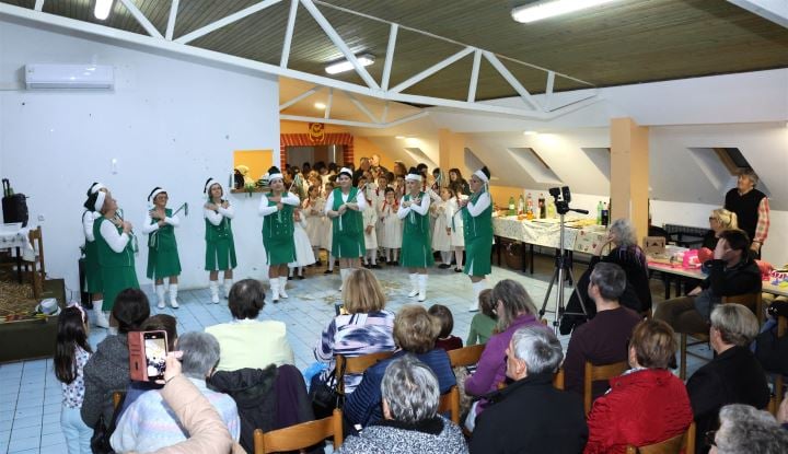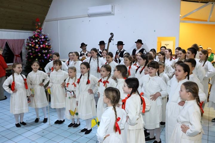 Božićne običaje, uz pjesmu, ples i kićenje bora, prikazala je Dječja folklorna skupina KUD – a Matija Gubec. Bor su kinčem, odnosno cvijećem i ukrasima od krep papira, okitili članovi obiju udruga te školska djeca, a pod bor su stavljene drvene jaslice, koje je izradio Stjepan Labaš s figurama od perušine koje je napravila Dubravka Perešin.