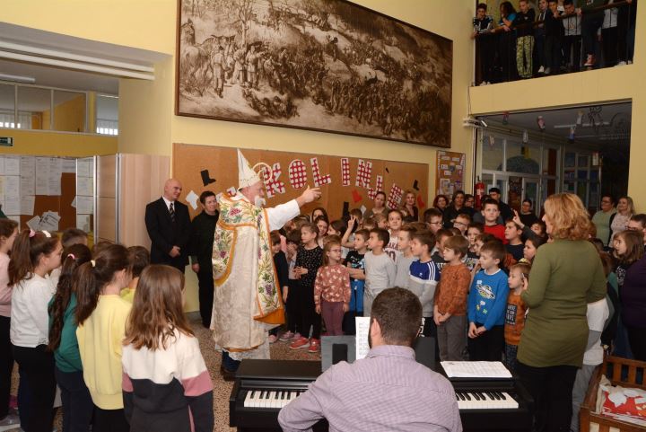 Radosna je ekipa Svetog Nikole posjetila i Osnovnu školu Matije Gupca, gdje su ga dočekali učenici, zajedno s učiteljicama i djelatnicima škole. Pjevalo se i sviralo, na radost Nikolinja. Slatke pakete osigurala je Općina Gornja Stubica.