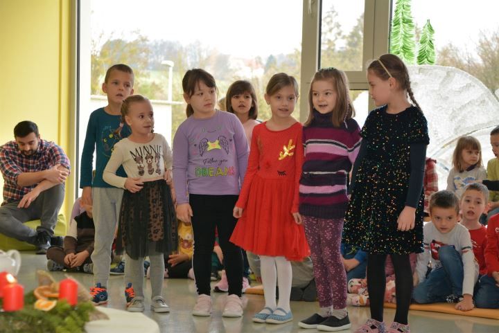 Dječica su ga sa svojim tetama dočekala uz pjesmu i pljesak, a njihova su se lica posebno ozarila kada su im Sveti Nikola i njegovi pomoćnici podijelili slatke paketiće.