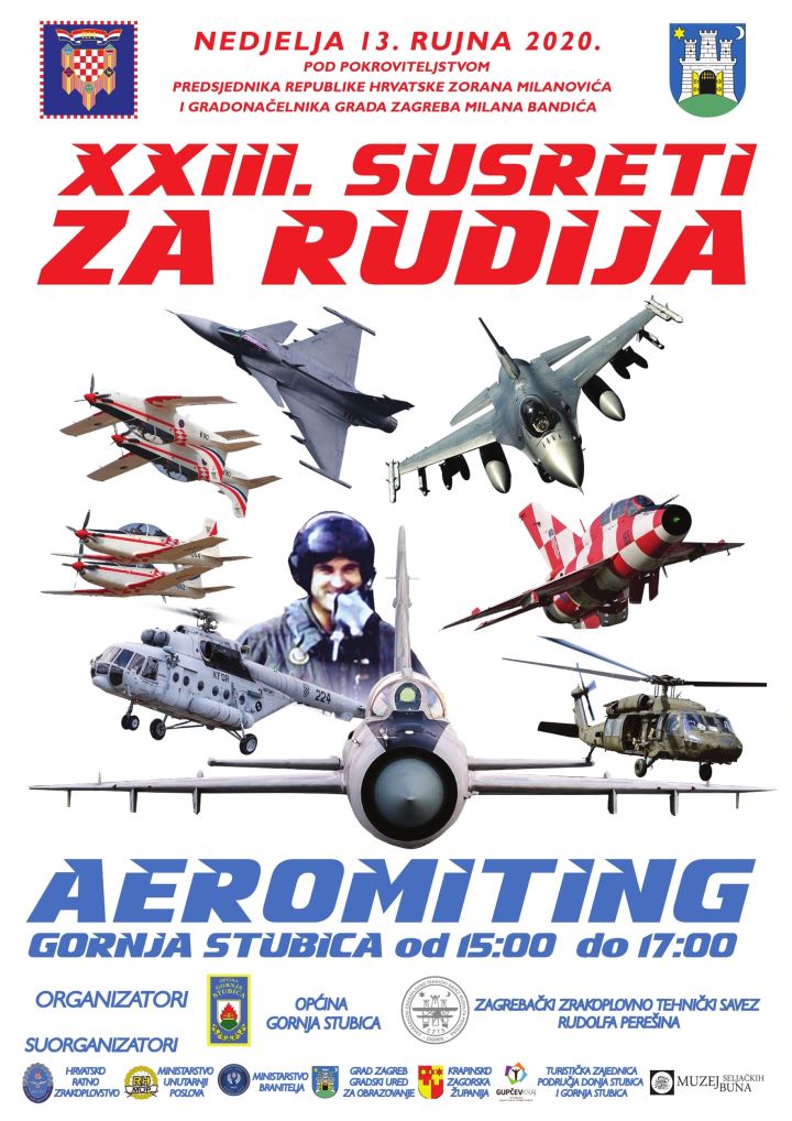 U nedjelju 13. rujna očekuju nas 23. Susreti za Rudija. Ove godine u malo drugačijem izdanju. Zbog epidemioloških mjera, zemljani program se neće održati, ali će zato tu biti bogat letački program među kojima će biti i Američki lovac F-16, Krila oluje, helikopteri, MIG 21, JAS-39 Gripen iz Mađarske....