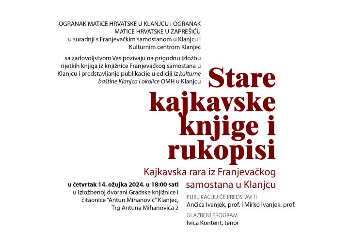 Prigodna izložba starih knjiga i predstavljanje publikacije Stare kajkavske knjige i rukopisi: kajkavska rara iz Franjevačkog samostana u Klanjcu