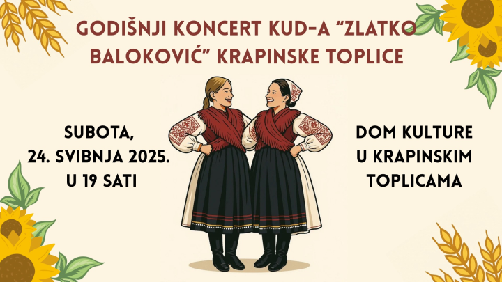 Kulturno – umjetničko društvo “Zlatko Baloković” iz Krapinskih Toplica održat će godišnji koncert u subotu, 24. svibnja početkom u 19 sati u Domu kulture u Krapinskim Toplicama.