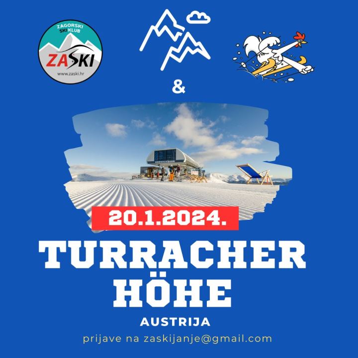 Zagorski skijaški klub ZASKI poziva vas da se pridružite na jednodnevnom skijanju ili bordanju na poznatom skijalištu Turracher Höheu u Austriji. Zahaljujući specifičnom geografskom položaju, skijalište Turracher Höhe slovi za jedno od „najsigurnijih“ skijališta kada je snijeg u pitanju. Široke skijaške staze i zaleđena površina jezera Turracher See, pisten-butler i mnoštvo atraktivne ponude za zabavu, zaokružuju zimsku ponudu ovog skijališta. I ove godine skija se s prijateljima iz Ku-ku-ri-ku-a.