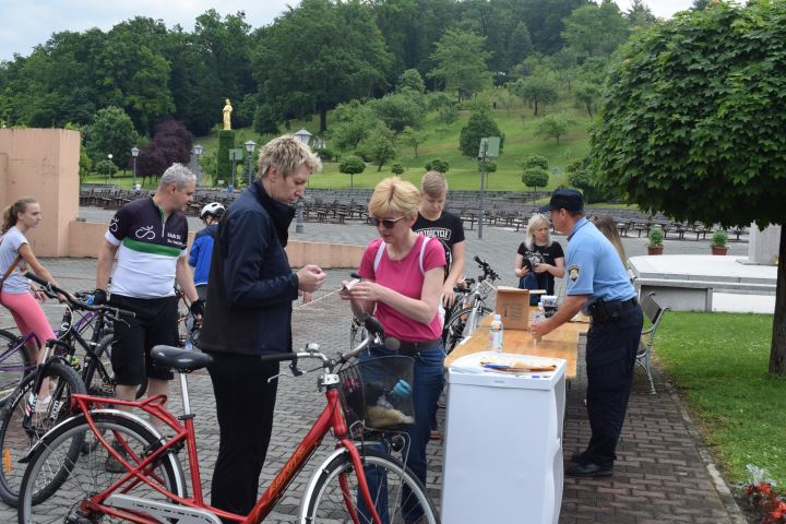 Riječ je o vrlo zanimljivoj biciklijadi, koja je pokrenuta 2014. godine, a prošle je godine upotpunjena i suradnjom sa Svetištem MBB i hodočašćem biciklista. Tako je u Bazilici MBB misu u 9 sati predslavio rektor Svetišta preč. Domagoj Matošević, te je nakon mise blagoslovio bicikliste. Već tradicionalno biciklisti su imali priliku upisati svoje bicikle u evidenciju Policijske uprave krapinsko-zagorske. Nakon upisivanja krenulo se na rutu dugu 13,5 km, koja prolazi kraj kapelice sv. Ladislava u Podgorju Bistričkom, kapele sv. Marije Magdalene u Humu Bistričkom, kapelice sv. Roka u Podgrađu i kraj kapelice na Vinskom Vrhu. Uz stajanja za osvježenje kod kapelice sv. Marije Magdalene, sv. Roka i na Vinskom Vrhu, završetak biciklijade bio je kod Bluesun hotela Kaj, gdje je bio osiguran ručak za sudionike, kao i izvlačenje tri nagrade za sudionike biciklijade. Uz lijepo vrijeme ovom na trenutke zahtjevnom rutom uputilo se 130 biciklista. TZ-i Općine Marija Bistrica, uz PU KZ u organizaciji su pripomogli i DVD Marija Bistrica, kao i Gradsko društvo Crvenog križa Donja Stubica.