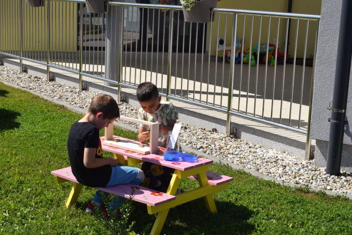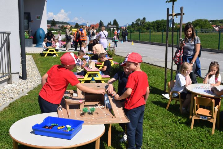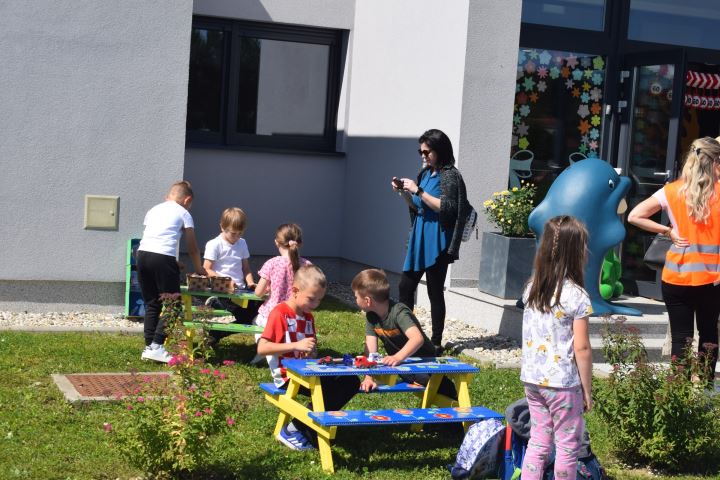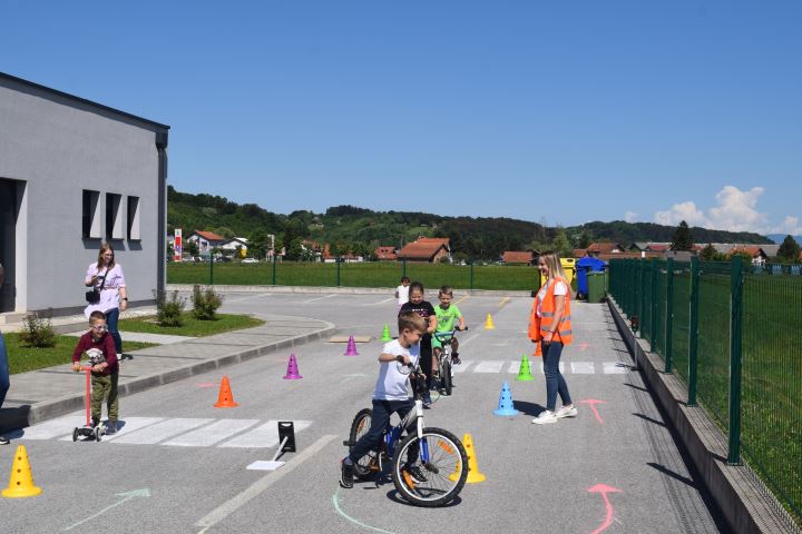 Akcija je potom nastavljena na vanjskom prostoru, gdje su organizirane poučne igre sa prometnom tematikom, a na pripremljenom poligonu djeca su se okušala i u vožnji biciklom ili romobilom, uz upoznavanje pravila ponašanja u prometu, a sve uz budno oko odgajateljica Mire, Kristine, Klare, Ivone i Lucije.