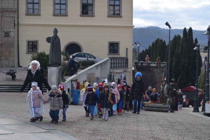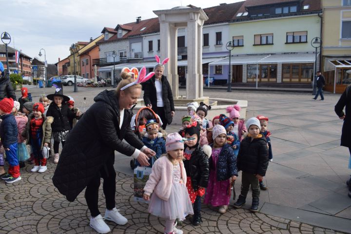 Djecu je dočekao je načelnik Josip Milički, sa suradnicama, koje su podijelile djeci slatkiše. Djeca su se kratko zadržala na središnjem bistričkom trgu, pred zgradom općine, otpjevali su nekoliko pjesmica i vratili se u vrtić. Ni njihove odgajateljice nisu iznevjerila tradiciju maskiranja.