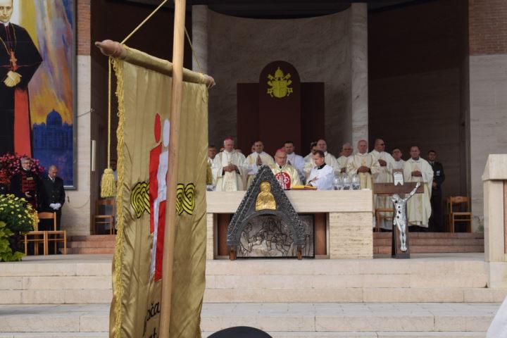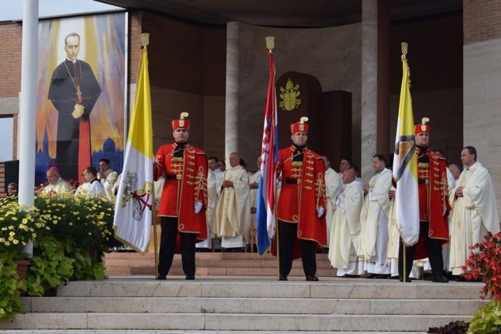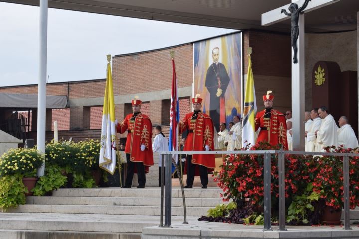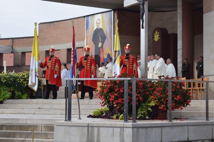 Nakon dolaska pješačkog ešalona, svečanog i počasnog dijela na prostor Crkve na otvorenom blaženog Alojzija Stepinca predviđen, euharistijsko slavlje predslavio je vojni ordinarij u RH mons. Jure Bogdan