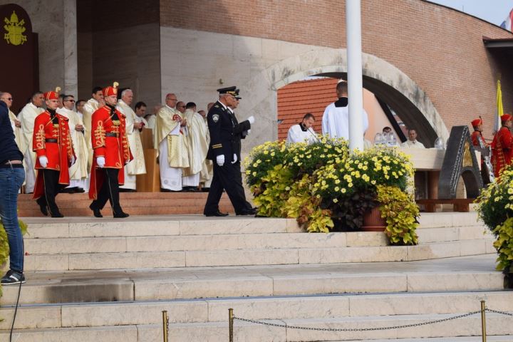 Nakon dolaska pješačkog ešalona, svečanog i počasnog dijela na prostor Crkve na otvorenom blaženog Alojzija Stepinca predviđen, euharistijsko slavlje predslavio je vojni ordinarij u RH mons. Jure Bogdan, u zajedništvu s biskupima mons. Petrom Palićem i mons. Jurajem Jezerincem, kao i brojnim vojnim i policijskim kapelanima i dekanima te ostalim svećenicima.