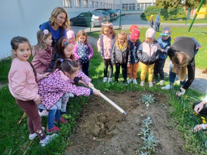Kad već imaju tako cvjetna imena, onda je sasvim logično da u svom stažu imaju i jedan ozbiljan posao, a to je sadnja cvijeća, ali i ne samo cvijeća. Ovih dana provedena je prava mala radna akcija, koju su predvodile odgojiteljice Lidija, Ana, Kristina, Martina, Lucija i Gabrijela, ali su vrlo aktivno sudjelovala i djeca.
