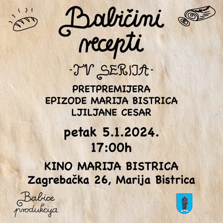 Prva ovogodišnja epizoda iz serijala ''Babičini recepti'' Marija Kroga, snimljena je u Mariji Bistrici, kod obitelji Cesar, a u glavnoj ulozi bila je naravno baka Ljiljana. Svoj pretpremijeru epizoda će doživjeti u petak 5. siječnja u Kinu Marija Bistrica, s početkom u 17 sati. Ulaz je slobodan.