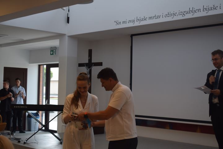 U četvrtak 8. srpnja u Dvorani Božjeg milosrđa u Svetištu MBB održana je završna priredba učenika osmih razreda nedavno završene školske godine u OŠ Marija Bistrica. Uz vodstvo svojih razrednica sad već bivši osmaši pripremili su program, koji se sastojao od pokoje recitacije, pjesme i video materijala, koji su ih podsjetili na 8 nezaboravnih godina osnovne škole.