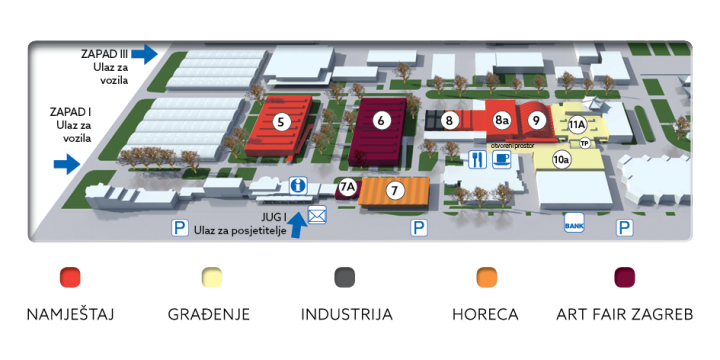 paviljon 5 - prizemlje: Solelux, Fagus, Wofi Leuchten, Tepih centar, Kamini Hoyan, Tehno-dom, Tehnomont, Drvona, Oprema A.L.T., Centar rasvjete, Haby, Mihonović, Arboline, Bokart