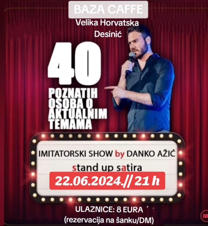 - Nakon prošlogodišnjeg uspjeha sa stand-up nastupom Aleksa Lazića, ove godine nastavljamo u istom duhu. Već ove subote, 22. lipnja, s početkom 21 sat, u Bazi će nastupiti riječki imitator i satiričar Danko Ažić, poznat po imitiranju 40 poznatih osoba – dodaje Pečnik. Ulaznice za ovaj događaj možete nabaviti u Baza caffeu, a očekujte još jednu večer ispunjenu smijehom i zabavom, što je na neki način postalo i zaštitni znak prostora.