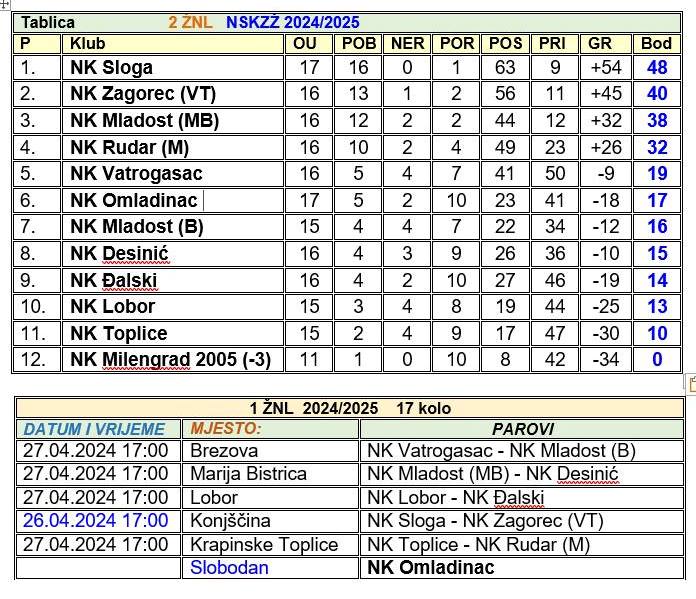 U 18. kolu 2. zagorske lige vodeća Sloga će već sutra u 17 sati dočekati Zagorec VT u derbiju prve i druge ekipe. Sloga bi pobjedom gotovo osigurala naslov. U ostalim utakmicama, u nedjelju u 17 sati sastaju se Mladost MB – Desinić, Toplice – Rudar M, Vatrogasac – Mladost Belec i Lobor – Đalski, dok je slobodan Omladinac.