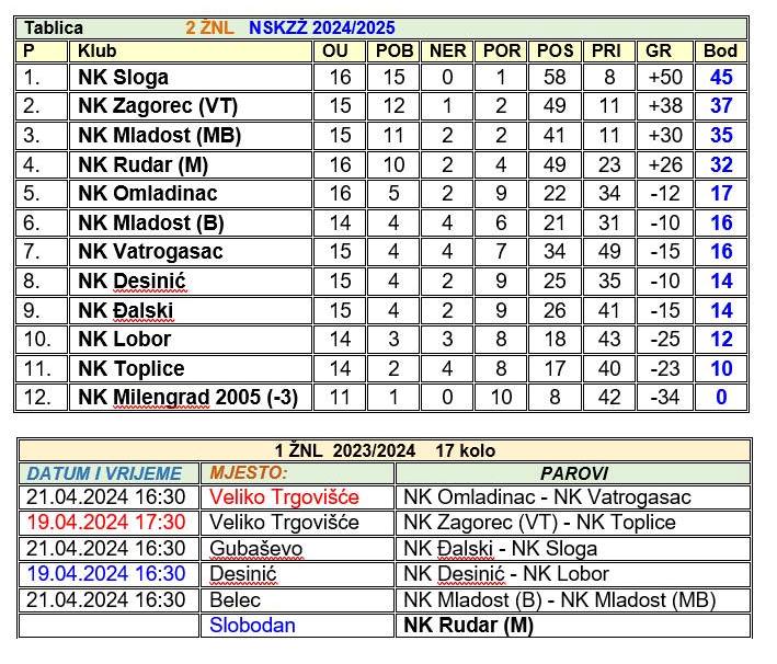U 17. kolu 2. zagorske lige vodeća Sloga će već sutra u 16.30 sati dočekati Desinić. Zagorec VT je slobodan, a ostale utakmice igraju se u nedjelju u 16.30. Vatrogasac će dočekati Mladost MB, Lobor je domaćin Mladosti iz Belca, a Toplice Đalskom, dok će u Velikom Trgovišću igrati Omladinac i Rudar M.