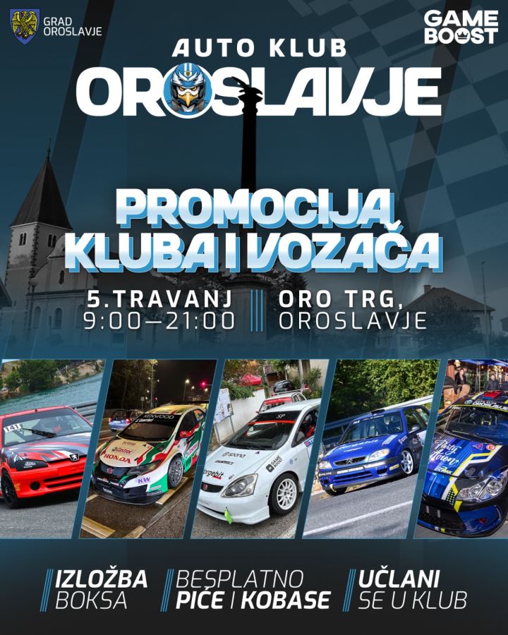 U subotu 5. travnja od 9-21 sati na Oro-trgu u Oroslavju održat će se promocija auto kluba Oroslavje i njegovih vozača koji će za pet tjedana s velikim pojedinačnim i klupskim ambicijama ući u novu sezonu brdskih utrka u Skradinu.