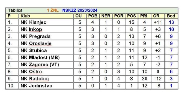 Danas se igra 6. kolo 1 i 2 zagorske nogometne lige, s iznimkom dvije utakmice u 2. ligi. U 1. zagorskoj ligi na rasporedu je veliki derbi, u kojem Klanjec dočekuje Pregradu. Vodeći Klanjec još je bez poraza, a Pregrada se nakon dva uvodna poraza digla i sa tri pobjede dolazi na derbi sa rastom forme. Hoće li to biti dovoljno za sjajnu ekipu Klanjca, možete provjeriti od 16 sati u Klanjcu. U isto vrijeme igraju se i druge utakmice. Zanimljivo će biti i u Zlataru, gdje Oštrc dočekuje Stubicu, posebice nakon pojede Oštrca protiv Inkopa i poraza Stubice od Oroslavja. Inkop će pak u lokalnom derbiju dočekati Mladost MB, a Oroslavje je domaćin Zagorcu VT. Prvu pobjedu tražit će Jedinstvo protiv Radoboja.