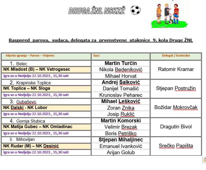 Vrlo zanimljivo bit će u Pregradi, gdje gostuje Stubica, a zanimljive su uvijek i utakmice između Mladosti MB i Oroslavja. Zadnji Radoboj dočekuje Oštrc. Utakmice se s početkom u 15.30 sati.