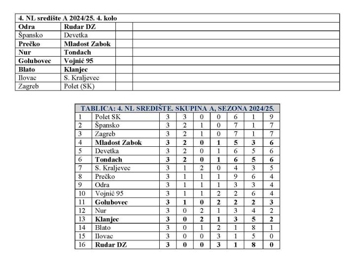 Danas je na rasporedu 4. kolo 4. NL središte skupina A.