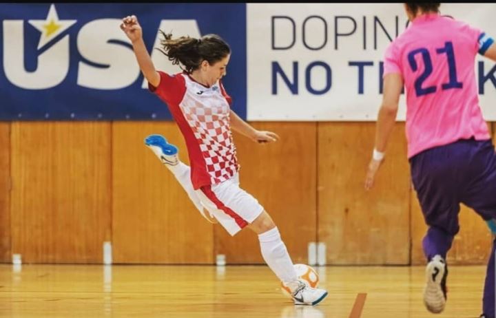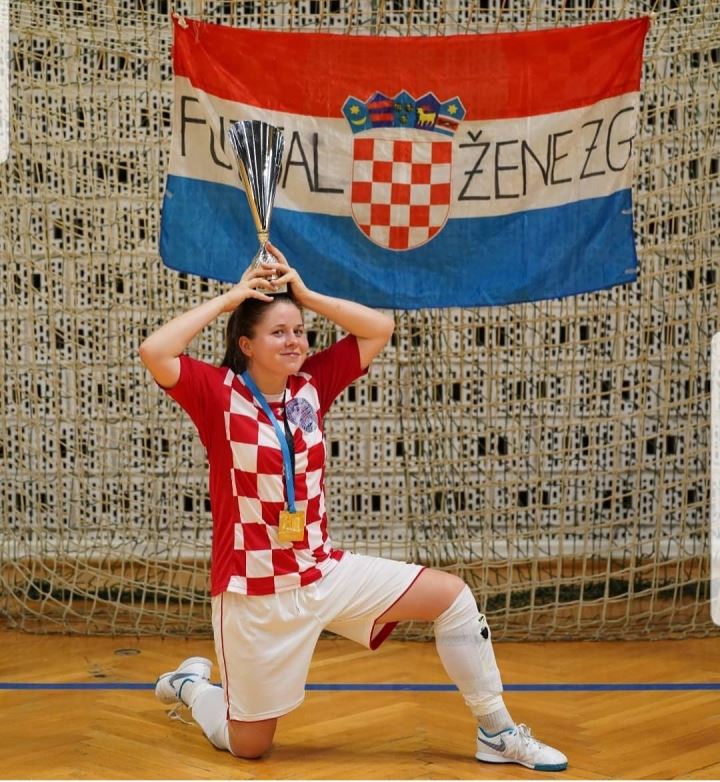 Prije svega želim naglasiti da je braniti nacionalne boje velika je čast za svakog sportaša i nedosanjani san velike većine “običnih” ljudi, a moj se san ispunio jer poseban je osjećaj koji se ne može opisati kada obučete dres Hrvatske a zasvira himna. Bila sam članica U – 17 i U – 19 reprezentacije a odigrala sam i nekoliko utakmica za A reprezentaciju. Koliko sam utakmica odigrala na žalost ne znam i jednog ću dana morati posložiti i tu statistiku. I kada misliš da se sve posložilo dogodila mi se povreda ( prednji križni ligamenti ) tako da sam pauzirala gotovo dvije godine da bi nakon povratka, na moju veliku radost, opet dobila poziv za reprezentaciju. Upravo u negdje tom vremenu formirala se futsal reprezentacija Hrvatske pa sam odlučila da ako dobijem poziv za reprezentaciju u oba segmenta – veliki i futsal – da ću se odazvati pozivu za futsal reprezentaciju. U klubu nas je četiri reprezentativke ( Marija Žagar, Karla Kurkutović, Nika Petarić i ja ) pa je sve lakše na reprezentativnim okupljanjima.