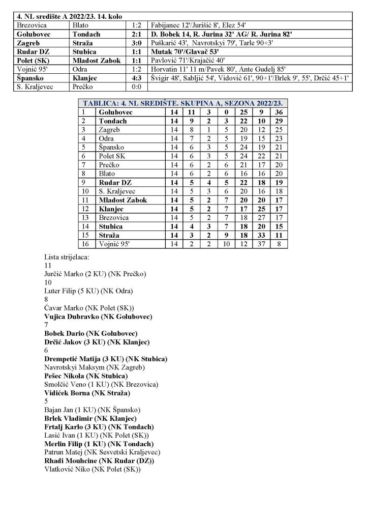 4. NL središte – skupina A – komentar 14. kola