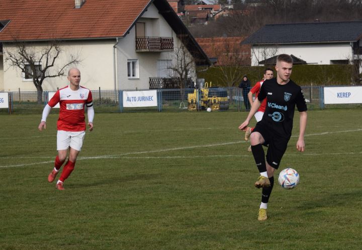U 43. minuti Silvio Ferček dobiva jednu loptu na lijevoj strani, pokušava ubaciti, ali se to pretvara u opasan udarac pod gredu, ali Turčić je oprezan i hvata loptu. U drugoj minutu sučeve nadokande prvog poluvremena F. Videk opet dobro ubacuje s desne srane, lopta prolazi nedaleko gol crte, ali svi kao da su skamenjeni i nitko ne reagira, kako od obrane gostiju, tako i od napada domaćina, a kada je izašla iz opasne zone sudac Lukec svira kraj prvoga dijela, u kojem su domaćini imali posjed, ali i pokazali previše nespretnosti u završnici, dok su gosti jednu od dvije kontre pretvorili u vrijedno vodstvo.