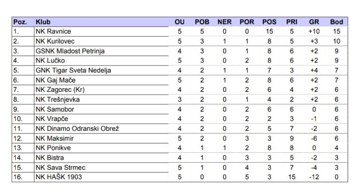 Odigrano je u 5. kolo 3. NL centar. Još u petak Gaj je pobijedio Lučko sa 3:0. Bila je to vrlo dobra predstava Gaja, za kojeg su zabili Samarin, Frtalj i Kovačić. Drugi zagorski predstavnik Zagorec KR igrao je kod Maksimira. Domaćini su poveli u 36. minuti, preko Glavinića, no u nastavku, u 64. minuti Korytskyi je izjednačio. Ipak, da sva tri boda ostanu u Maksimiru, pobrinuo se Pirš u 83. minuti, kada je zabio za konačnih 2:1. Ravnice su slavile kod Ponikvi i vode sa 15 bodova, pet više od Kurilovca, koji je prvi puta poražen, kod Mladosti u Petrinji 3:4.