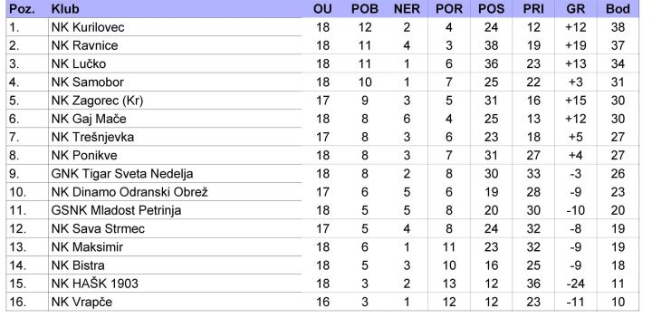 Zagorec će danas gostovati kod Dinama OO, dok će Gaj u Maču sutra u 11.30 sati dočekati Tigar Sveta Nedelja. Iako su zagorski predstavnici pri vrhu, Zagorec pet (sa utakmicom manje) i Gaj Mače šesti, još čekamo na prvu zagorsku proljetnu pobjedu.