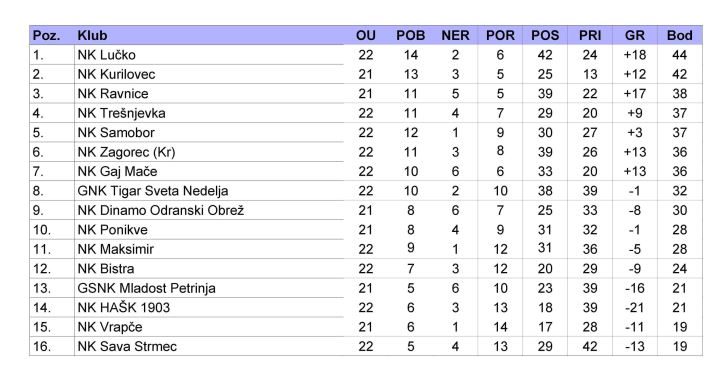 Jedna utakmica igra se već danas u 17 sati, a sastaju se Ponikve i Sava Strmec. Sutra u 17.15 sati igrat će Ravnice i Trešnjevka, a sve ostale utakmice ovog kola igraju se u subotu.