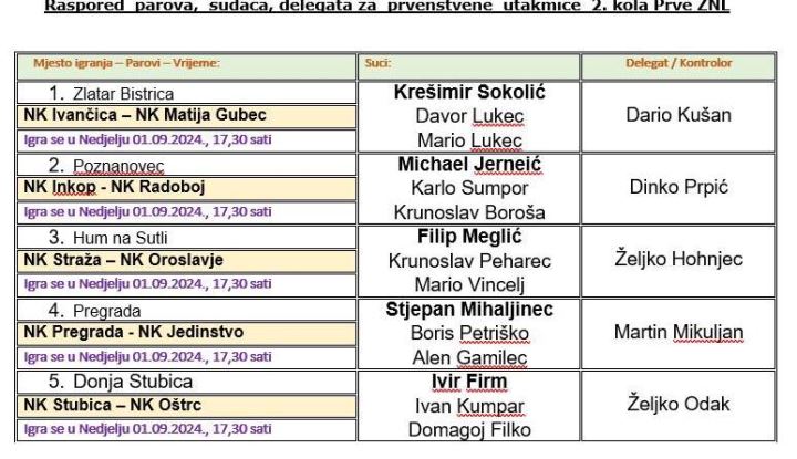 Sutra je na rasporedu 2. kolo 1. zagorske nogometne lige. U 2. kolu Stubica će imati drugu zaredom domaću utakmicu, u kojoj dočekuje Oštrc, a tu je i uvijek zanimljiva utakmice između Ivančice i Matije Gupca. Inkop će biti domaćin Radoboju, a Straža Oroslavju. Vrlo zanimljivo moglo bi biti u Pregradi, gdje će Pregrada dočekati Jedinstvo. Sve utakmice na rasporedu su sutra, s početkom u 17.30 sati.