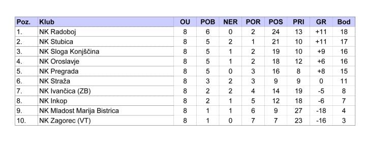 Pred nama su nova uzbuđenja u županijskim nogometnim ligama. U 1. ŽNL na rasporedu je 9. kolo, koje će već sutra otvoriti Straža i Sloga u 15.30 sati. Ostale su utakmice na rasporedu u nedjelju u 14.30 sati. Na rasporedu je i veliki derbi za kraj prve trećine prvenstva. Vodeći Radoboj dočekuje drugoplasiranu Stubicu. Pregrada će na gostovanje kod Mladosti MB, a Sloga kod Straže, dok Oroslavje dočekuje Inkop. U derbiju donjeg dijela ljestvice Zagorec VT dočekuje Ivančicu. Nakon toga još će se na jesen odigrati četiri kola.