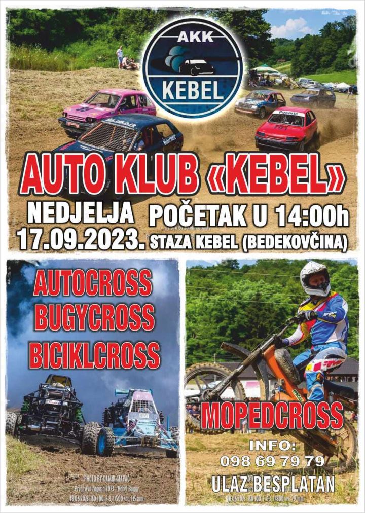 Udruga Auto klub Kebel ove nedjelje organizira prvenstvo Zagorja u Off Roadu na motokros stazi u Keblu. Riječ je o natjecanju autocross-a, bugycross-a i mopedcross-a te za one najmanje, da ne bi bili zakinuti, disciplina biciklcross-a, u kojoj mogu osvojiti simpatične medalje. Ove godine organizatori očekuju oko 40 natjecatelja iz cijele Hrvatske i Slovenije koji će se natjecati za prvenstvo Zagorja.