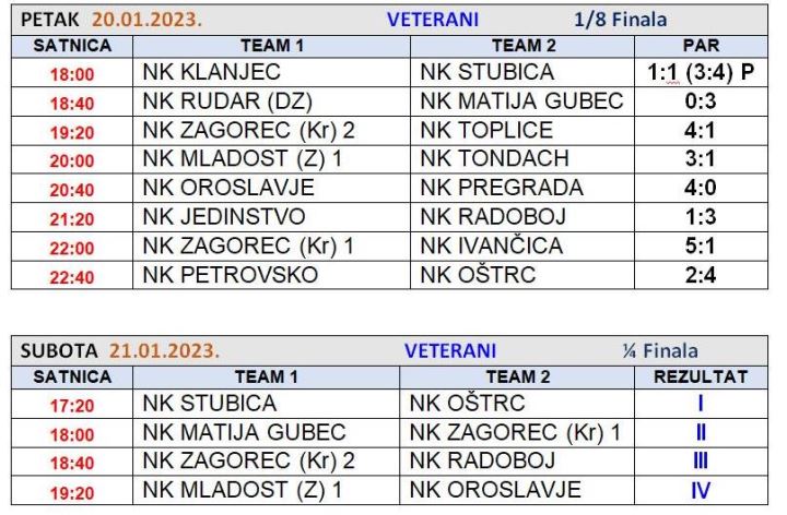 No prije četvrtfinala seniora, svoje četvrtfinalne utakmice igraju veterani