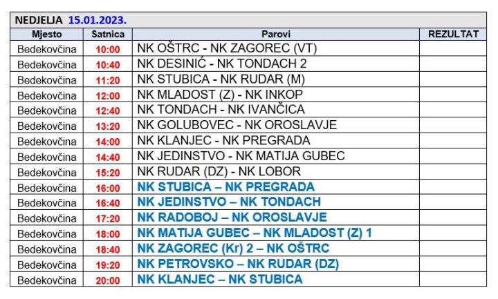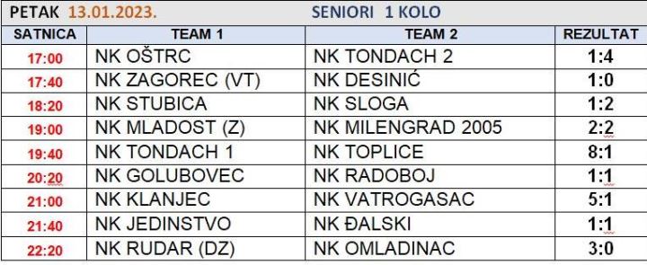 Evo svih jučerašnji rezultata. Sudila je trojka Kožar, Meglić, Komorski.