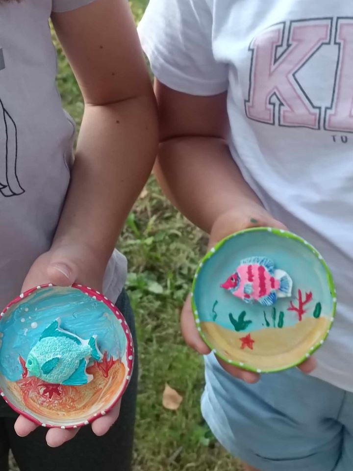 Veseli žamor i smijeh tridesetak mališana ispunio je prostor parka škole u četvrtak, 25. 7. na osmoj srpanjskoj radionici. Djeca su male gipsane ribice bojila ali i ukrašavala motivima mora ili podmorja prostor u koji će ih zalijepiti / poklopac s magnetom/.