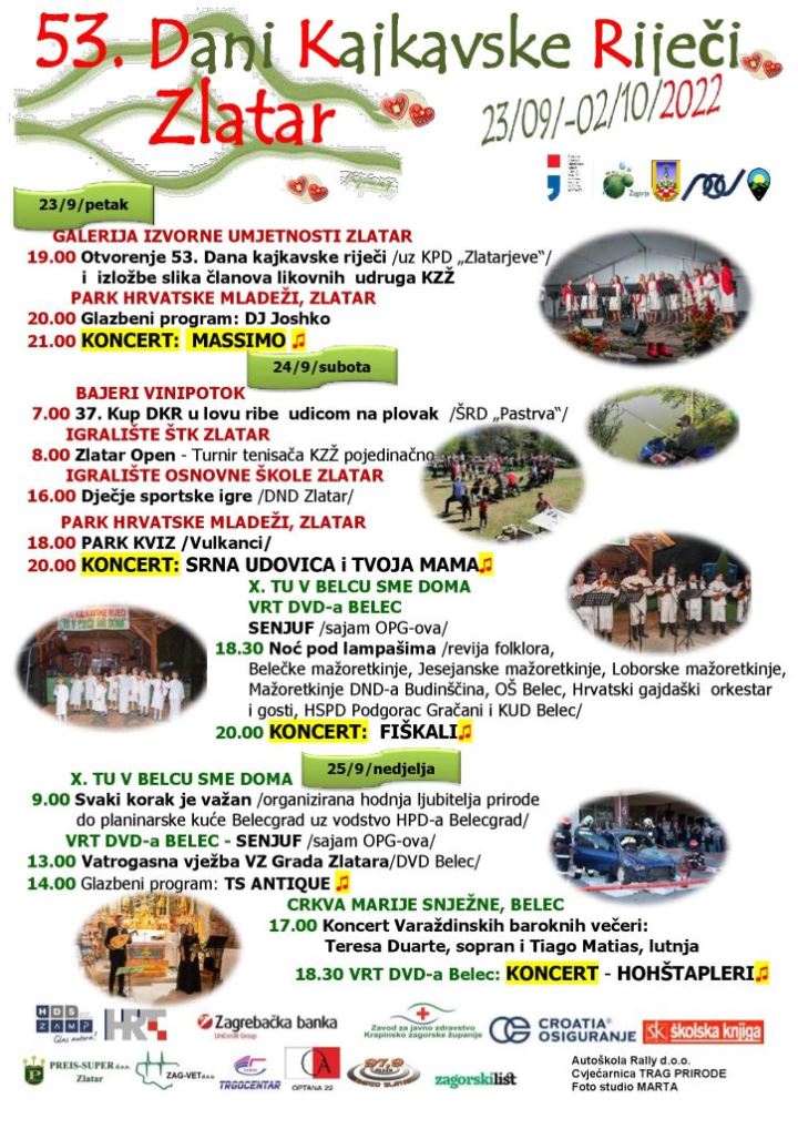Pogledajte što donosi program prvog vikenda te odaberite nešto za sebe na lokacijama u Zlataru i Belcu. Ulaz na sva događanja je slobodan.
