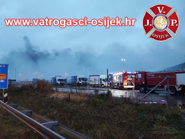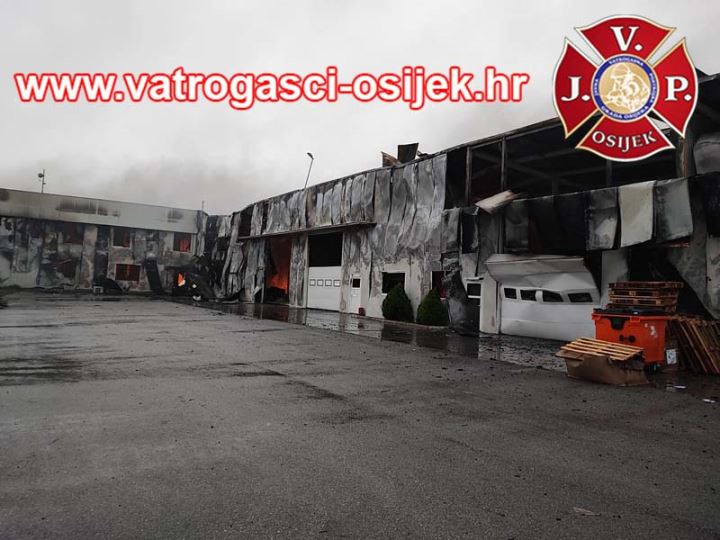 "Požar je 300 puta 100 metara, ako ne i više, to su prve procjene, ovdje ima više tvrtki u najmu. Mi još ne znamo o kojim se materijalima radi. U potpunosti su uništena skladišta tvrtki GLS i Lagermax. Imali smo velika izdimljavanja zbog požara u tvrtki koja ima uskladištene gume teretnog programa i razna maziva. Sada, kad je požar lokaliziran, ušli smo s pjenom i spriječili izdimljavanje", rekao je Goran Ivković, zapovjednik JVP-a Grada Osijeka.