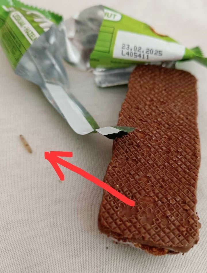 U popularnoj čokoladici 'Mond' jedna je Osječanka ostala iznenađena skinuvši ambalažu s jedne čokoladice primijetila je kako iz nje gmiže – crv!?! Otvorila je i drugi paket Monda i iz njega je također izgmizao još jedan - crv! Cijeli paket tih čokoladica kupljen je u trgovini Zvečevo u Osijeku s urednim rokom trajanja – do 23. 2. 2025.