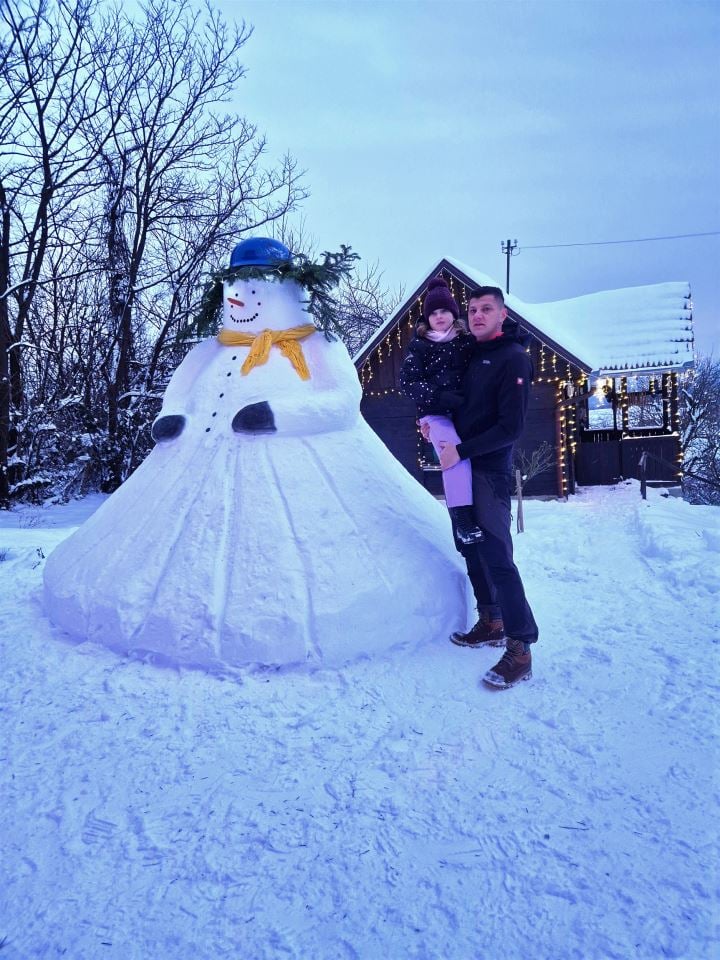 Na fotografijama je impresivan, gotovo divovski snjegović, nastao zajedničkom trudom i maštom cijele četveročlane obitelji, zajedno s klincima Hanom, Janom i Fran.