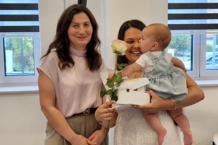 Jedna od zadovoljnih majki koje su primile poklone je Lea Galunić, koja se sa suprugom i bebom Barbarom nakon četiri godine vratila iz Njemačke.