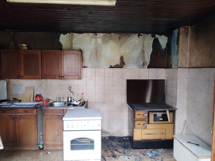 Prilikom eksplozije u kuhinji je nagorio dio lamperije jednog zida, kuhinjski element te je izbijeno staklo na prozoru kuhinje.