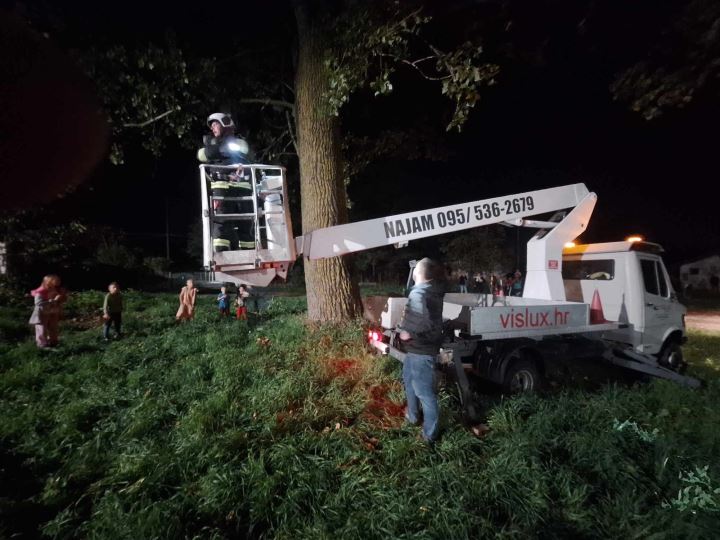 Članovi Dobrovoljnog vatrogasnog društva Pribislavec odazvali su se dojavi o mačiću koji je proveo četiri dana zaglavljen na visokom drvetu, na otprilike 20 metara visine.