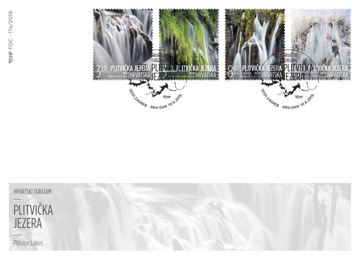 Prigodni poštanski blok Hrvatske pošte „Hrvatski turizam – Plitvička jezera“ iz 2019. s motivima slapova kroz četiri godišnja doba osvojio je prvo mjesto i nagradu na svjetskom filatelističkom natjecanju „Premio Internazionale d'Arte Filatelica“. Filatelistički „Oscar“ dodijeljen je u kategoriji „Turizam“, a trideset i treća je međunarodna nagrada Hrvatskoj pošti. Prigodni blok čine četiri poštanske marke na kojima je prikazan detalj slapova na jezeru Kozjak, detalj slapa na Velikim kaskadama između jezera Gavanovac i Kaluđerovac, slapići uz šetnice te detalj Velikog slapa.