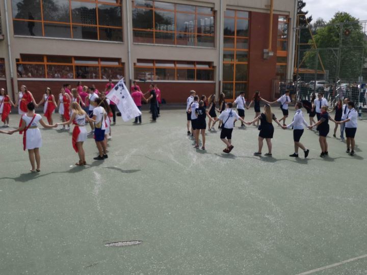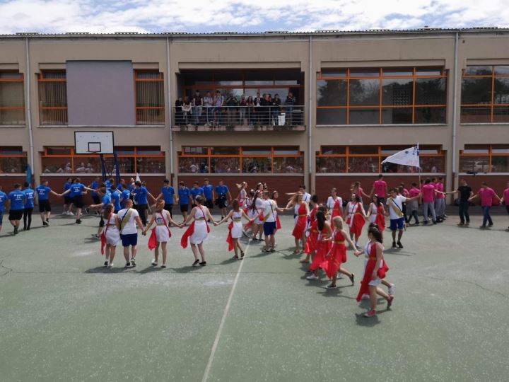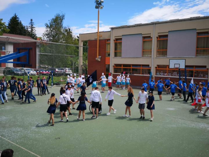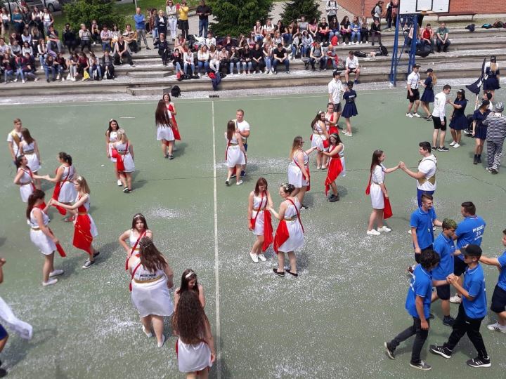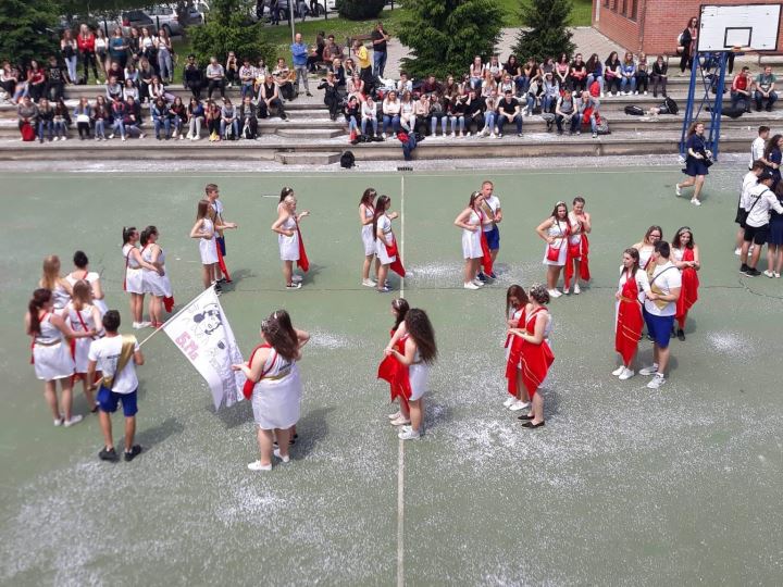 Učenici Srednje škole Bedekovčina, njih oko 150 iz sedam razreda danas su tradicionalno na igralištu zaplesali Salonsko kolo.