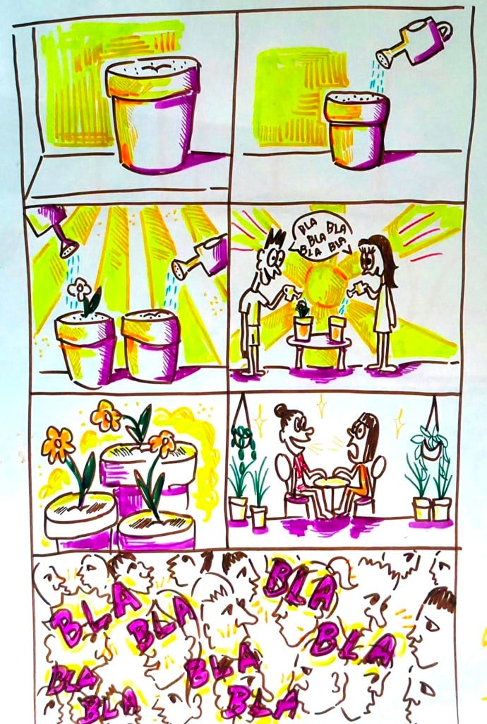 Polazišna točka za radionicu bilo je pitanje kako se među ljudima može uspostaviti kontakt bez ekrana te su studenti istraživali mogućnosti ne-digitalne komunikacije kroz prostor, predmete, situacije i društvene rituale.