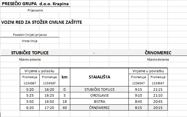 Stožer Civilne zaštite RH donio je Odluku o uvođenju izvanrednog međugradskog prometa za prijevoz zdravstvenog osoblja i policijskih službenika. Prijevoz će biti organiziran autobusima, a iz Krapinsko-zagorske županije do Črnomerca u Zagrebu zdravstveno osoblje i policajce prevozit će autobusi Presečki grupe.
