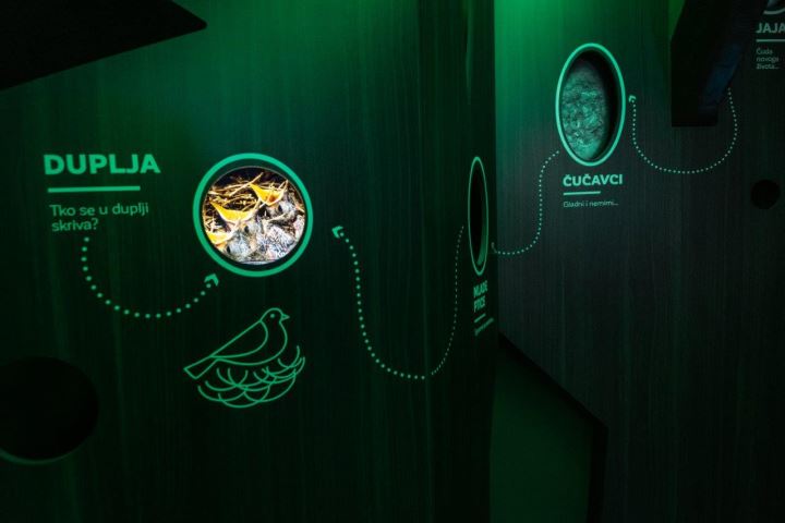Prostor potkrovlja sastoji se od tri cjeline u kojima je podjednako zastupljena prezentacija zaštićenih područja te biljnih i životinjskih vrsta, prikaz pada Hraščinskoga meteorita, veoma važnog događaja za geološku znanost te se može zaviriti u Židovske jame, Natura 2000 područje, špilje koja je zatvorena za javnost. Može se zaviriti u gnijezdo ptica te uz hologram uživati u ljepoti orhideje i noćnom leptiru.