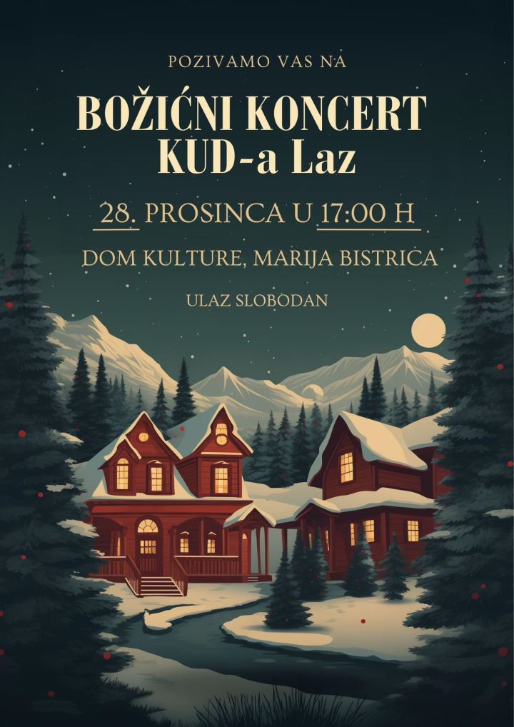 Na istom mjestu, u subotu 28. prosinca, također od 17 sati Božićni koncert održat će i KUD Laz, koji će također nastupiti sa svim svojim sekcijama uz nekoliko gostiju.