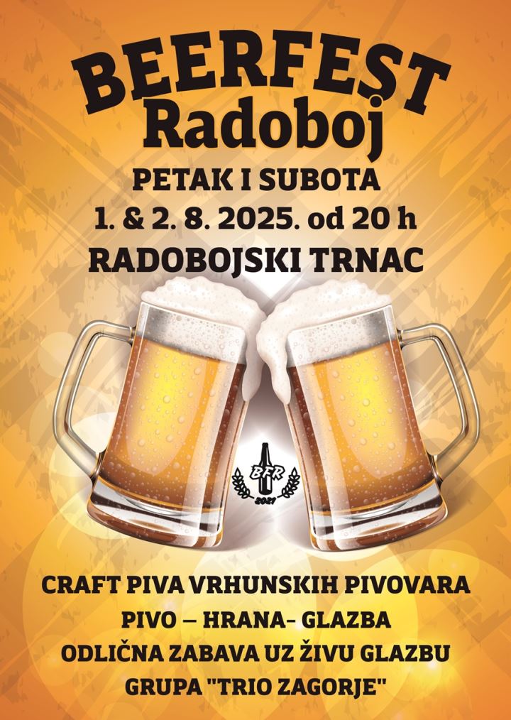 Za ljubitelje dobre glazbe i još boljeg druženja, 1. i 2. kolovoza rezervirani su za omiljeni Beerfest! Dvije večeri odlične atmosfere, glazbenih nastupa i bogate ponude piva očekuju vas u Radoboju.