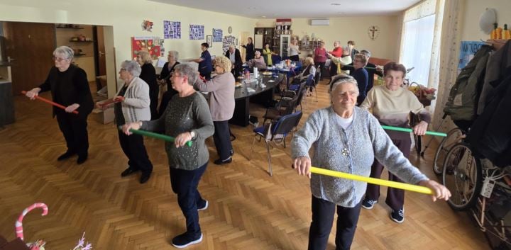 Korisnici su se podsjetili kako svakodnevnom tjelovježbom produžujemo životni vijek, smanjujemo rizik od bolesti srca, krvnih žila, kosti – osteoporoze, zglobova, dijabetesa, poboljšana nam je koncentracija i pažnja, bolji protok krvi i opskrba kisikom, tjelovježbom podižemo raspoloženje i pozitivne osjećaje, postižemo i održavamo poželjnu tjelesnu težinu, povećavamo mobilnost, i mnoge druge dobrobiti kojim postižemo zdravo tijelo i zdrav duh, a na kraju i zdravu starost, naglasila je Zaplatić. Nakon predavanja uslijedile su vježbe koje su naočigled razveselile korisnike i podigle dobro raspoloženje.